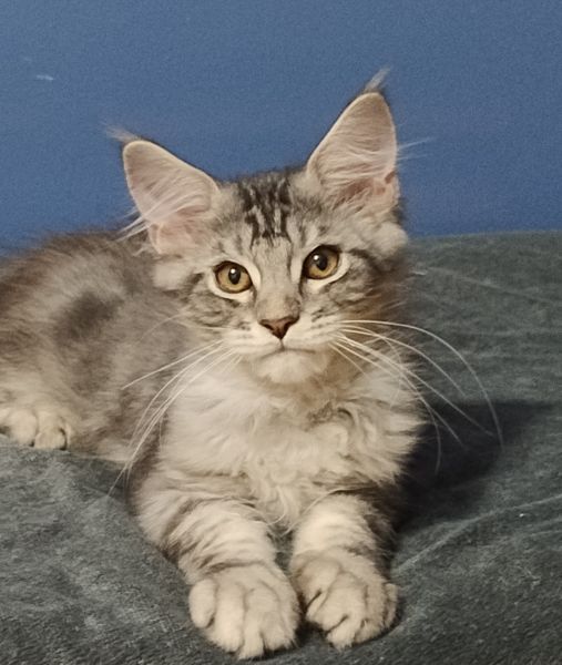 La mirada del Maine Coon te cautivará, los ojos del gato son grandes, ovalados y colocados en oblicuo. En cuanto a los colores, todos los tonos de ojos dorado y verde son admitidos.